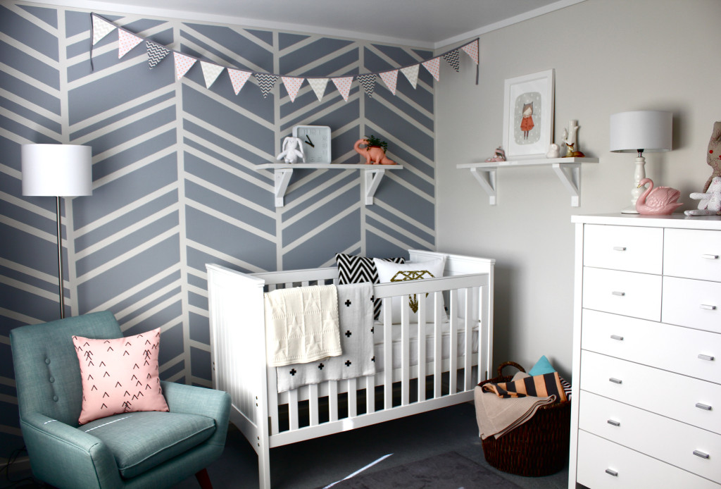 3. Girlandy, czyli trójkąty z tkaniny połączone tasiemką, to świetny pomysł na dekorację pokoju dziecka w stylu DIY, szczególnie popularny w USA ?