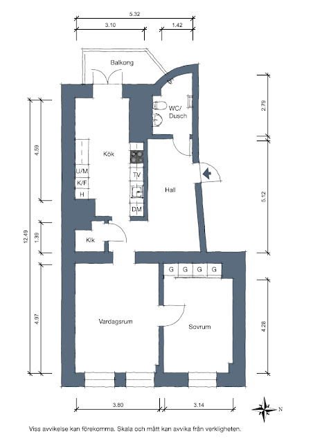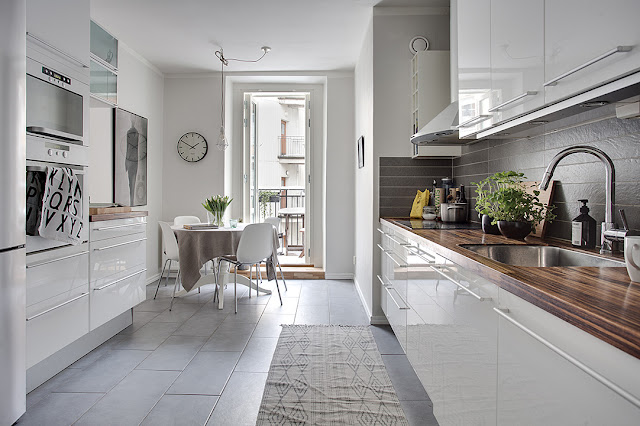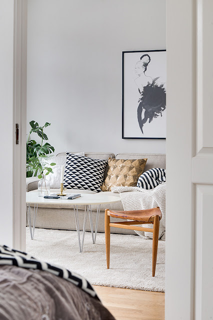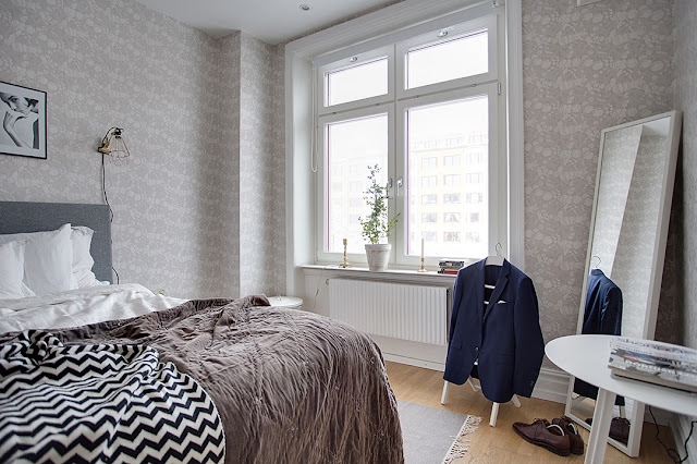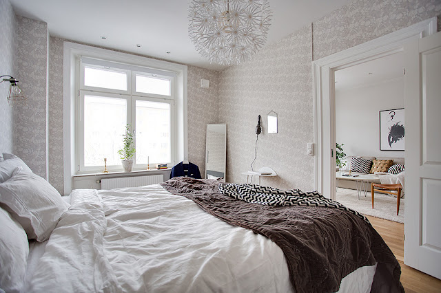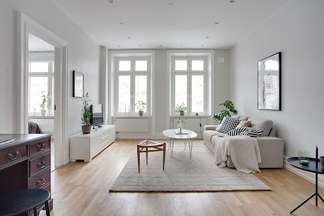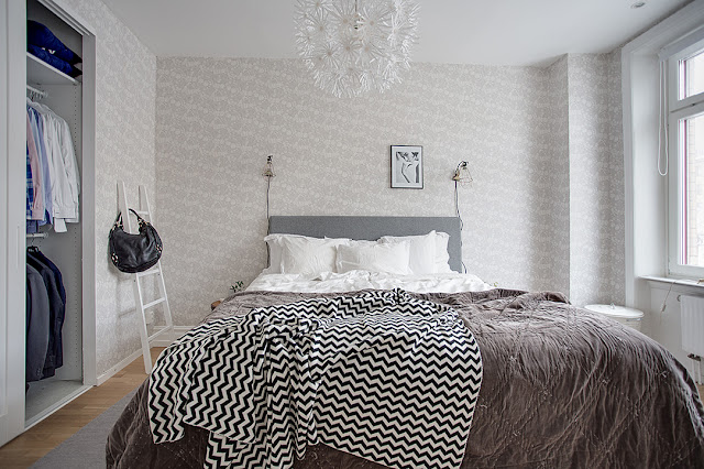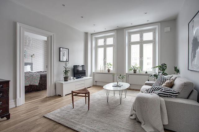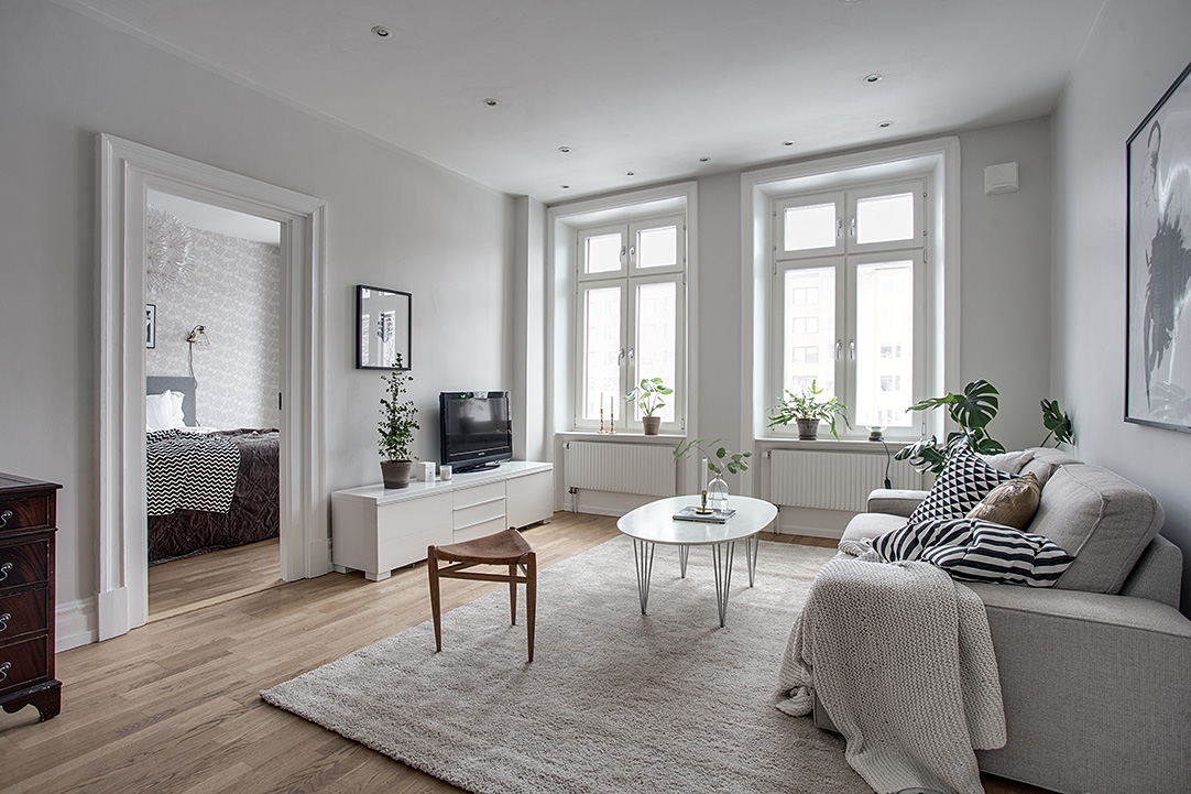 Mieszkanie dwupokojowe w skandynawskim stylu – aranżacja.Wnętrze ma 64m2 i znajduje się na trzecim piętrze – sześciopiętrowego budynku w Szwecji.