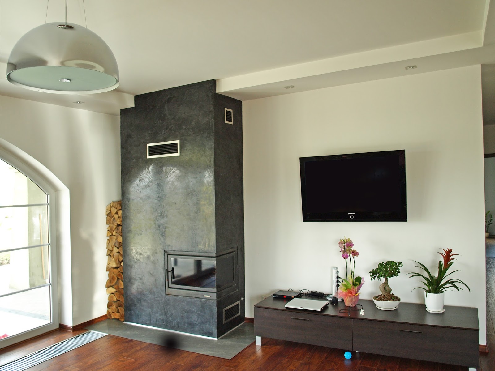 Ściana pomalowana farbą o efekcie aksamitu bardzo mi się podoba. Motor we wnętrzu nie bardzo mi jednak pasuje, ale to rzecz gustu.