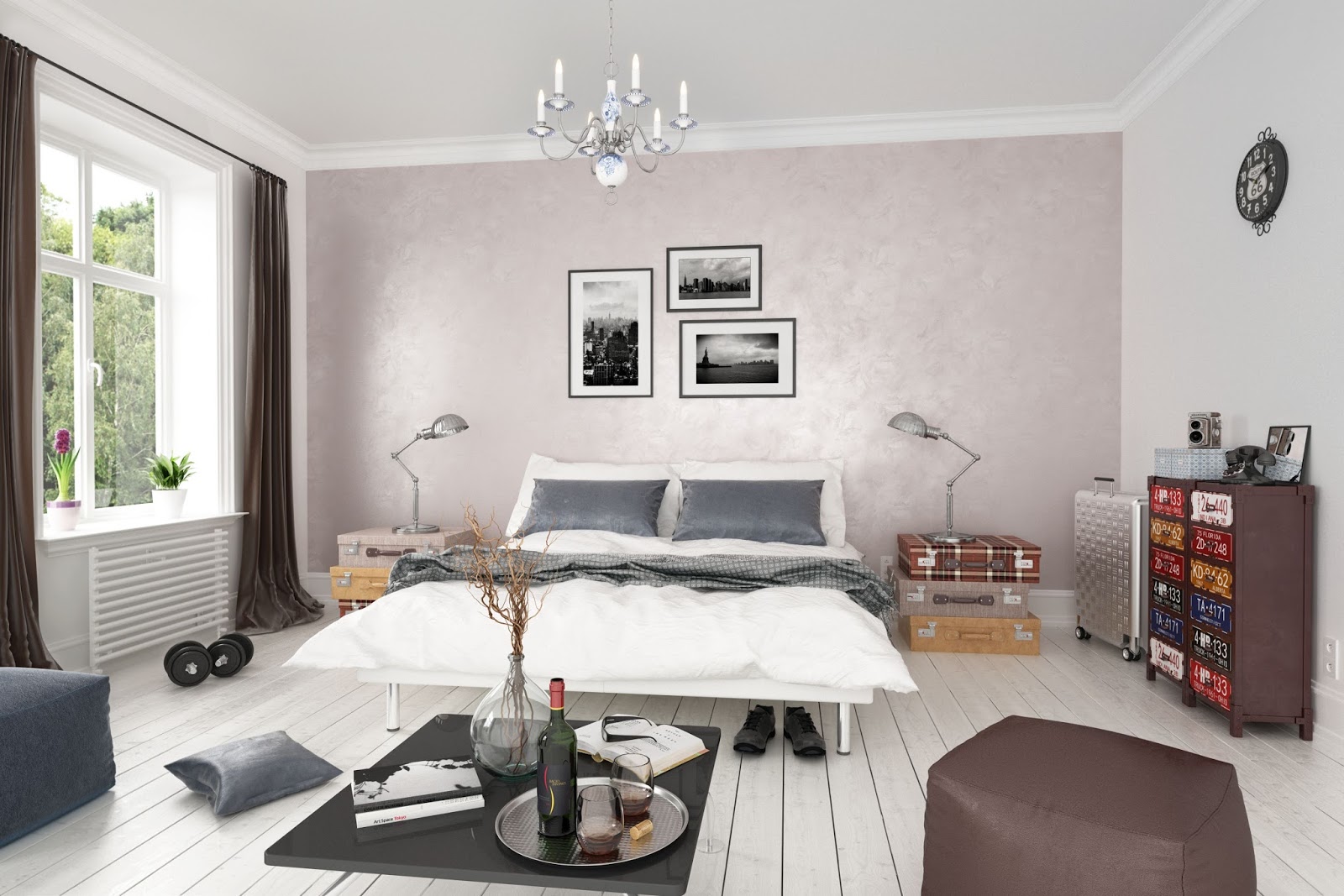 Jeśli miałbym się zdecydować czy wybrać satynową farbę czy może tą betonową przypuszczam, że sprawiłoby mi to problem. Pewnie farbę o efekcie aksamitu użyłbym tak jak w tym przypadku w sypialni a masę o efekcie betonu np do przedpokoju. Obie propozycje są świetne 🙂