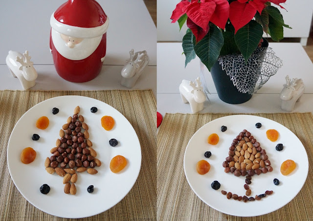 Czy próbowaliście kiedyś zrobić świąteczne dekoracje z bakalii? Można je ułożyć w formie choinki, gwiazdki.  Mogą zdobić wigilijny stół lub przywoływać nastrój świąteczny gdy całą rodziną zjemy je przed telewizorem zamiast niezdrowych chipsów i słodyczy!