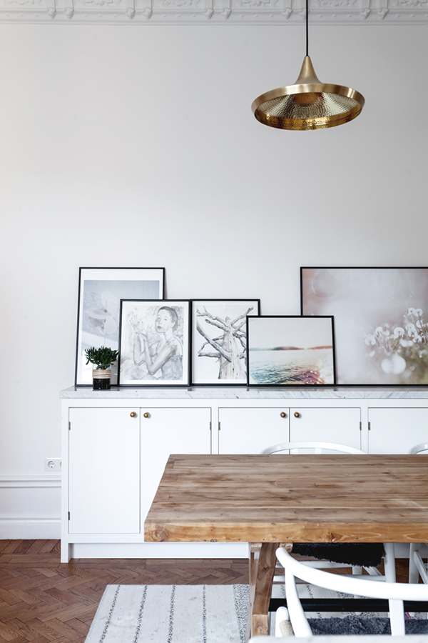 Wszystko na tak, za wyjątkiem złotych dodatków i ordynarnie wiszącego kabla, który łączy trzy lampy nad stołem z prądem. Szło to rozwiązać bardziej estetycznie.