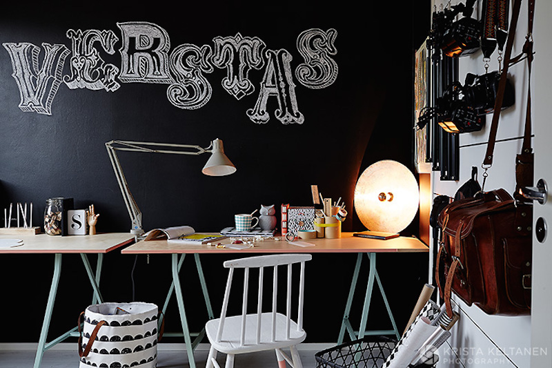 Ale ściana w stylu tablicy to zgroza jak dla mnie. Już sobie wyobrażam tonę kurzu z tej kredy…