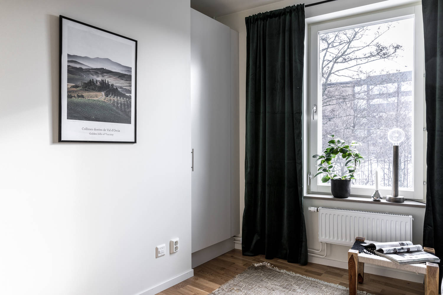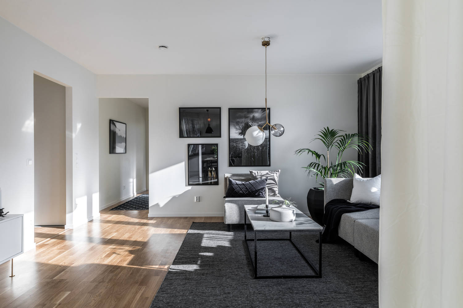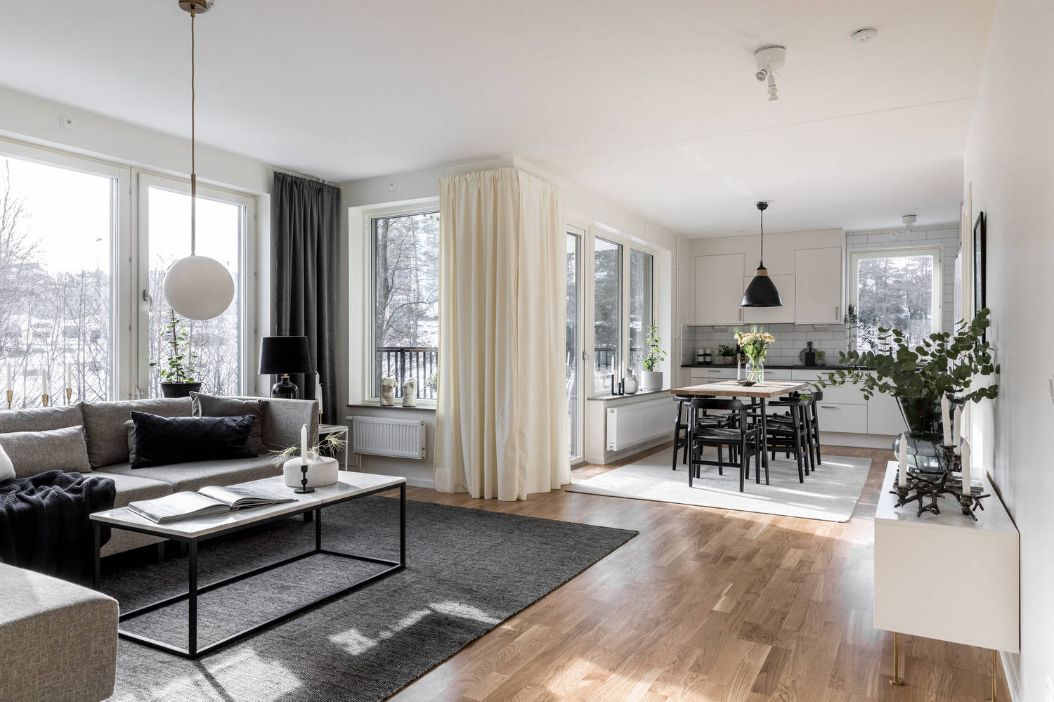Duże mieszkanie (prawie 100m2) o klasycznej aranżacji położone w nowym bloku z 2017 r. w szwedzkim miasteczku. Dominują tutaj stonowane kolory takie jak biel, beże, szarości i brązy. Wystrój jest minimalistyczny. Mieszkanie składa się z salonu połączonego z aneksem kuchennym, dwóch sypialni oraz łazienek.