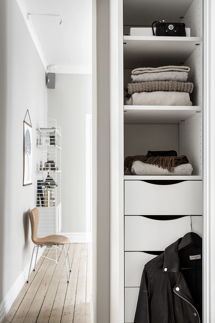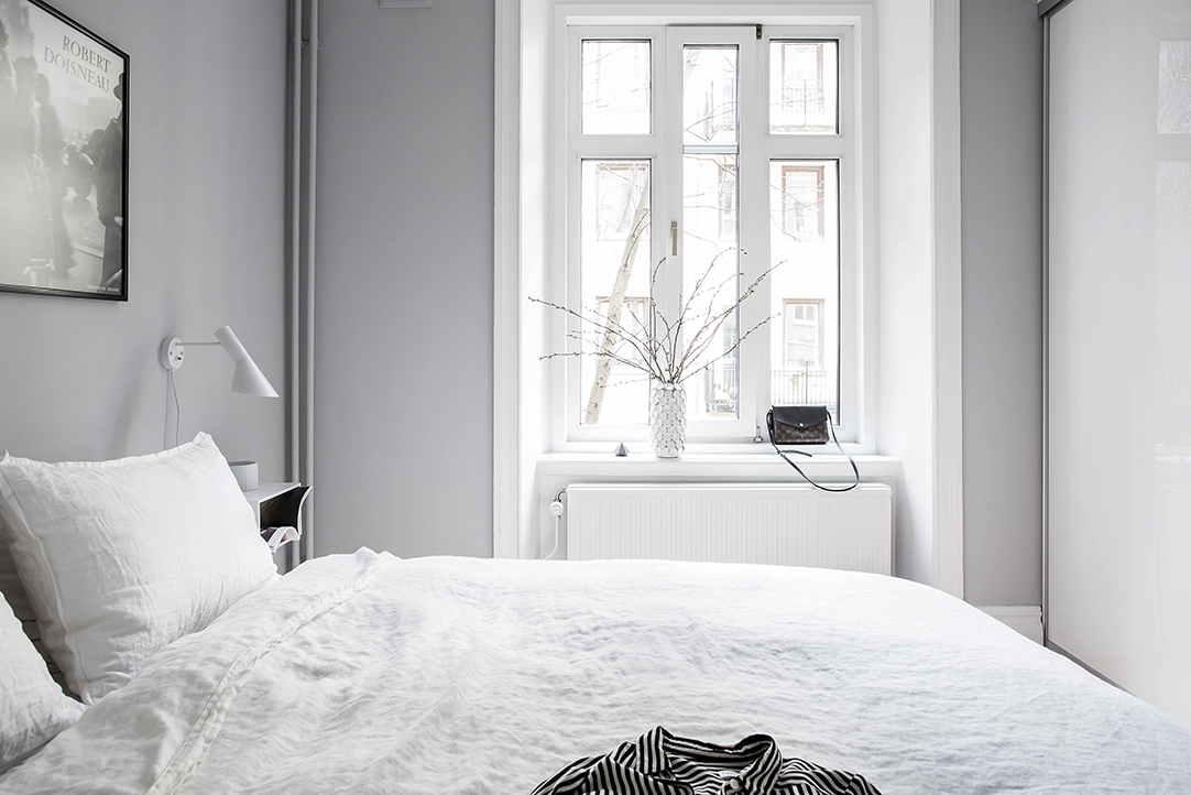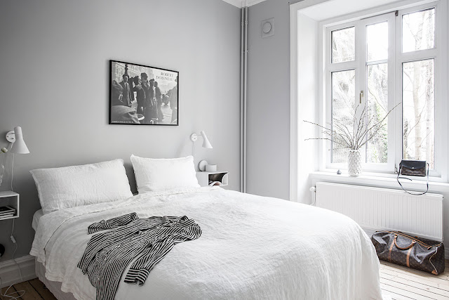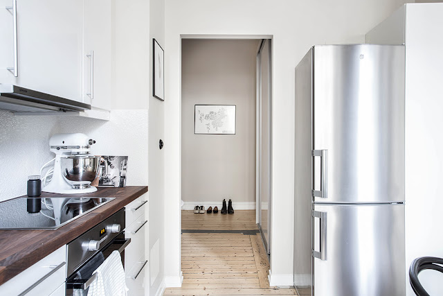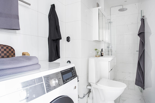Dwupokojowe skandynawskie mieszkanie o powierzchni 56m2. Sporo już przedstawiałam podobnych aranżacji, co różni to mieszkanie? Delikatny kolor lila na ścianach. Całe mieszkanie jest pomalowane tą samą farbą, oprócz tego pojawiają się takie kolory jak: biel, beż, brąz i szarości.