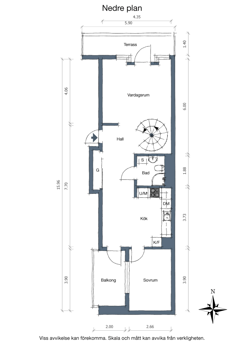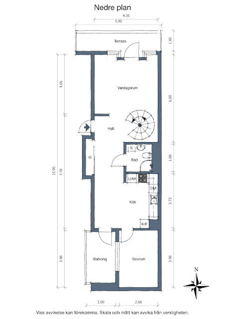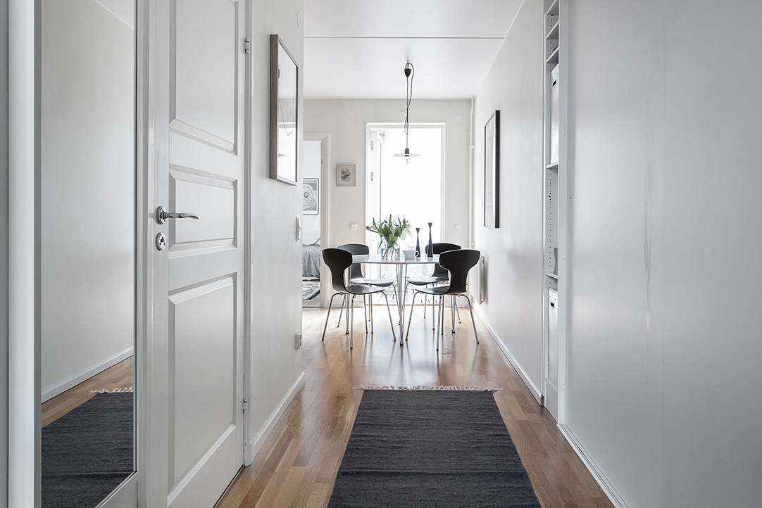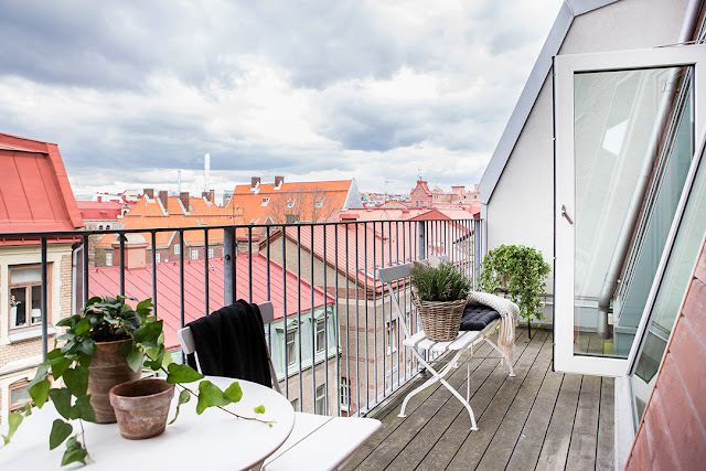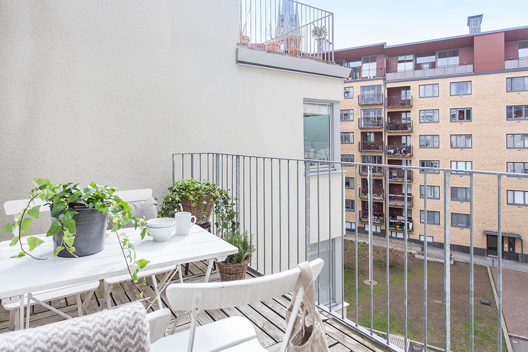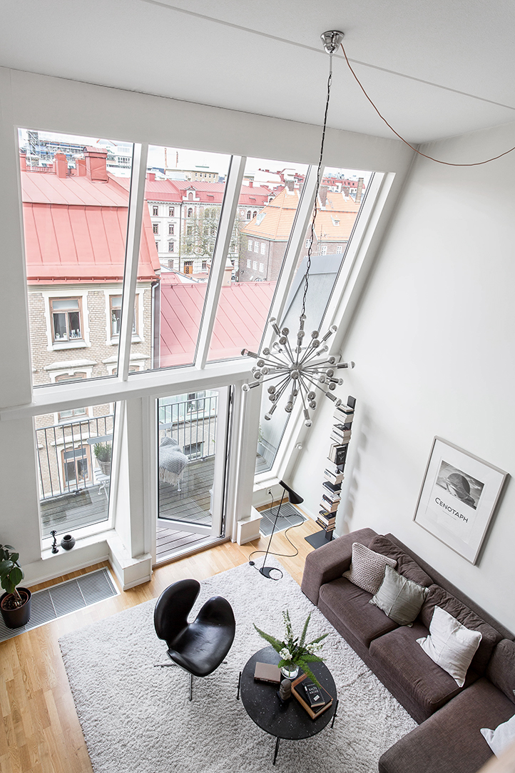 Głównym atutem mieszkania są aż trzy tarasy (!) z widokiem na szwedzką stolicę oraz fenomenalny wysoki salon!