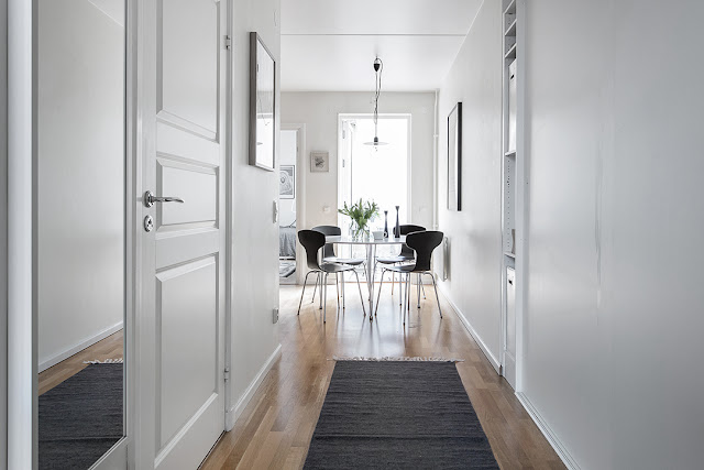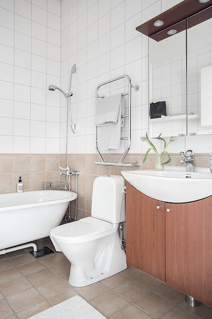 Spore to mieszkanie, niewiele mniejsze niż mój dom 😀 Najbardziej zauroczyły mnie sypialnie – są proste i przytulne. Głównym atutem salonu jest ta ściana zabudowana regałami – chciałabym coś takiego u siebie, tylko brakuje mi wysokości. Natomiast łazienki, nie ma co ukrywać, są po prostu paskudne 😛 Ale z tego co ostatnio czytałam, często właśnie łazienki we wnętrzach skandynawskich, są potraktowane trochę po macoszemu i raczej nie zachwycają.