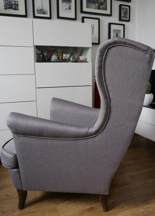 Podobny fotel – uszak aranżacja w pokoju dziennym