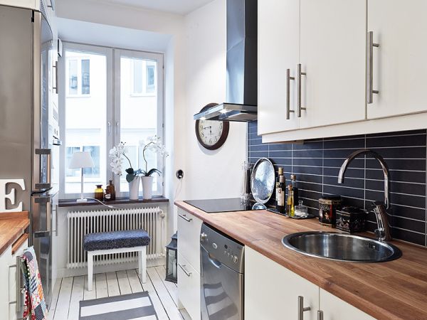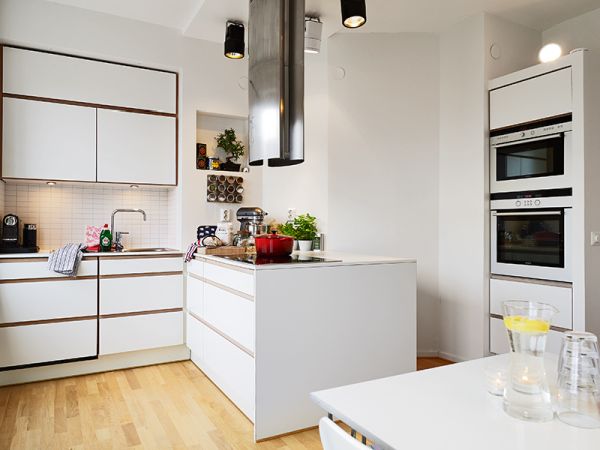 Kuchnie w bieli są obecnie niesamowicie modne, przełamane odpowiednimi dodatkami potrafią uczynić kuchnie bardzo charakterną. Moją uwagę przykuło zdjęcie z brunatną cegłą na ścianie – lubię takie połączenia, sama z chęcią bym taką zaaranżowała w mojej kuchni.