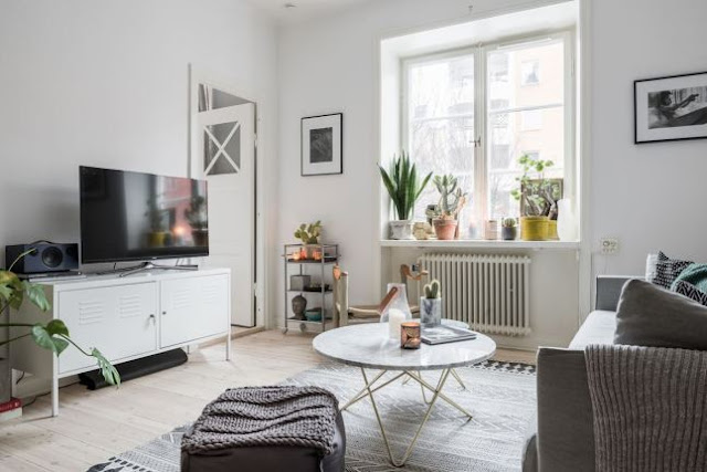 Dwupokojowe mieszkanie o powierzchni 39m2. To raczej małe wnętrze, a mimo to osiągnięto jasną i stosunkowo przestronną przestrzeń. Jak to osiągnięto? Z pomocą niezawodnego skandynawskiego stylu. Czyli: