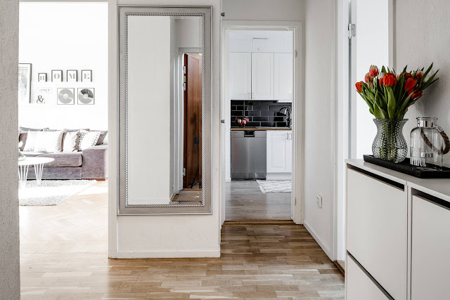 Właśnie te elementy czyli jasne kolory, mała ilość przedmiotów oraz dodatki powiększające optycznie wnętrze (jak lustro) to „w pigułce” recepta na to, jak urządzić małe trzypokojowe mieszkanie.