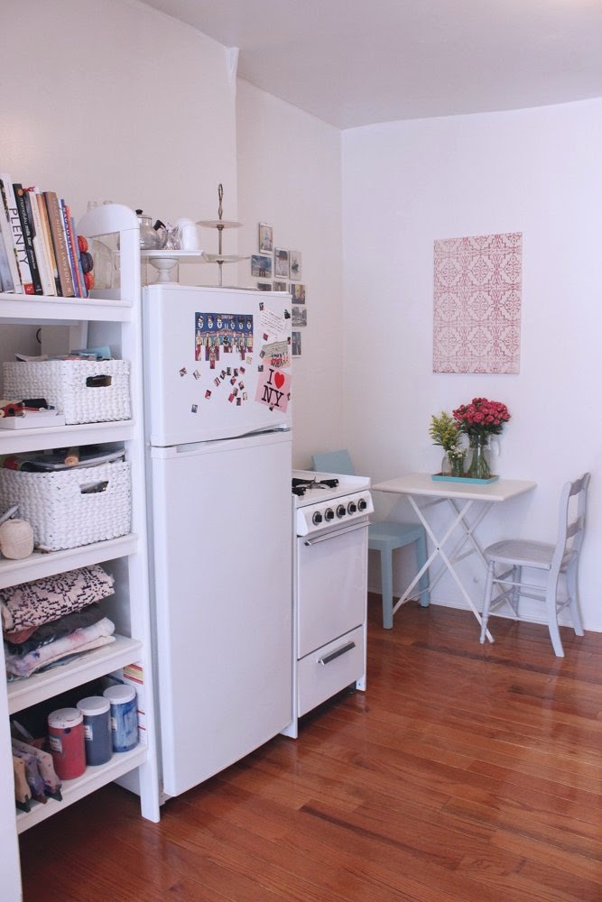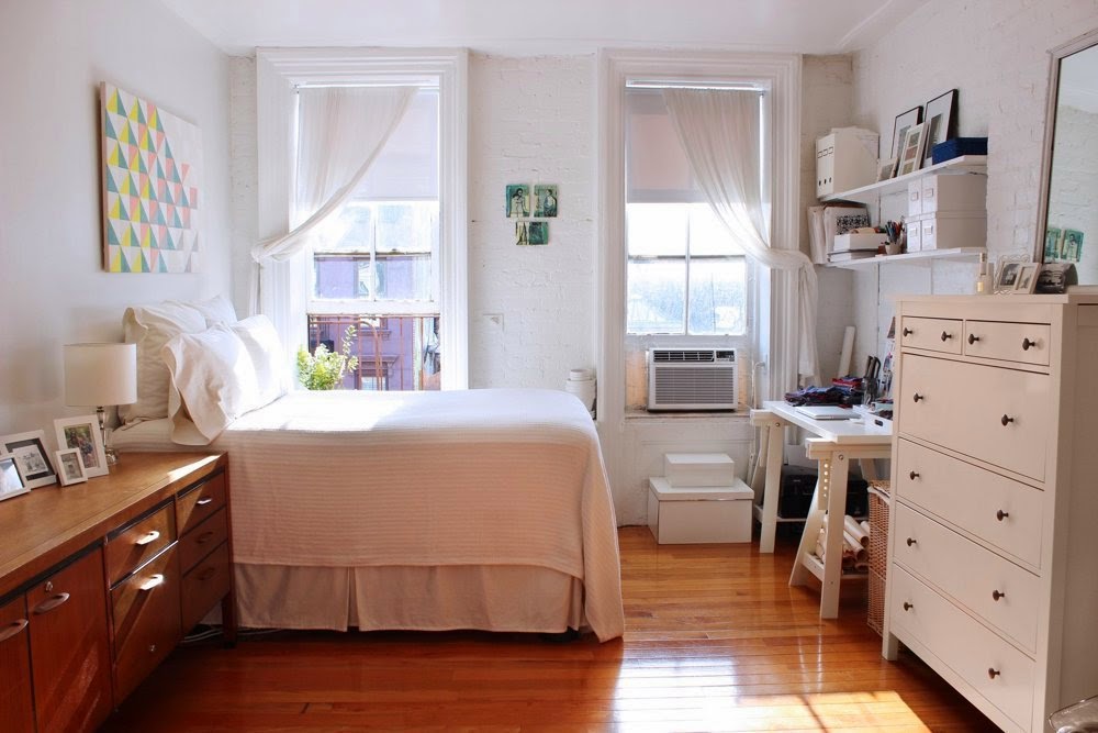 Mieszkanie ma 38m2 powierzchni i znajduje się w Nowym Yorku. Urządzone i zamieszkałe zostało przez młodą projektantkę Jacqueline Rousseau. Wnętrze ma charakter otwarty. W pokoju znajduje się sypialnia wraz z biurkiem pełniącym rolę pracowni proejektowej oraz fotelem do odpoczynku. Z okna widać charakterystyczne nowojorskie budynki. Większość mebli pochodzi z sieciowego sklepu IKEA, a mieszkanie wydaje się być bardzo przytulne. Myślicie, że mając do dyspozycji 38m2 można by coś ulepszyć?