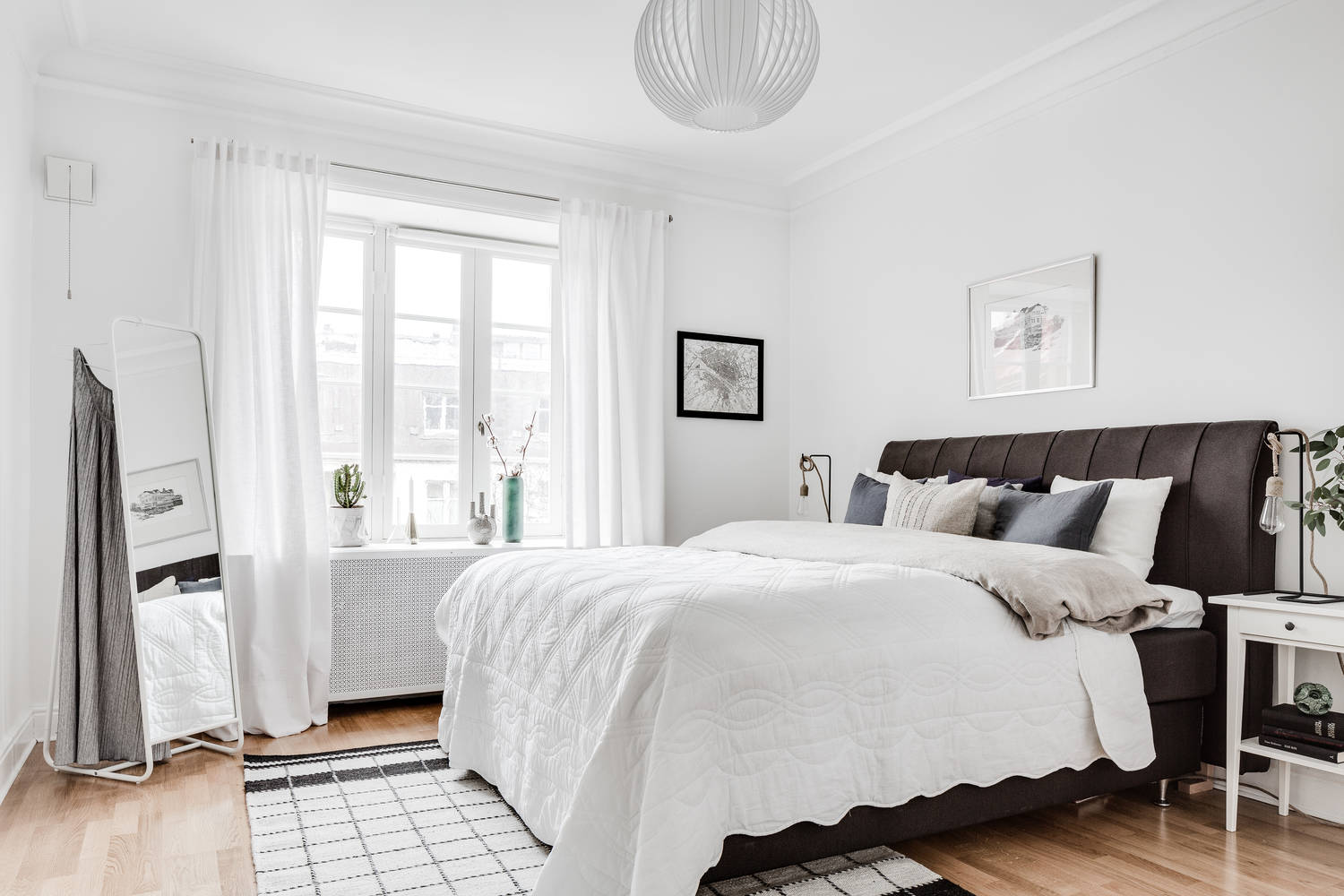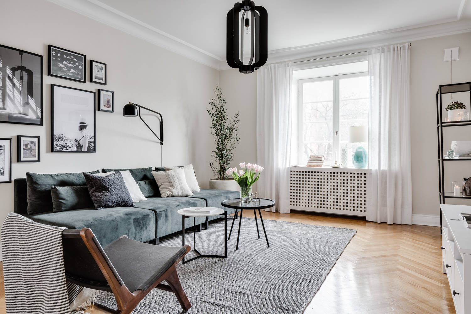 Jak urządzić mieszkanie w kamienicy – propozycja aranżacji wnętrza w starym budownictwie. Powierzchnia mieszkania to 84m2, na niej znajdują się trzy pokoje: kuchnia połączona z aneksem kuchennym, pokój dzienny oraz sypialnia.
