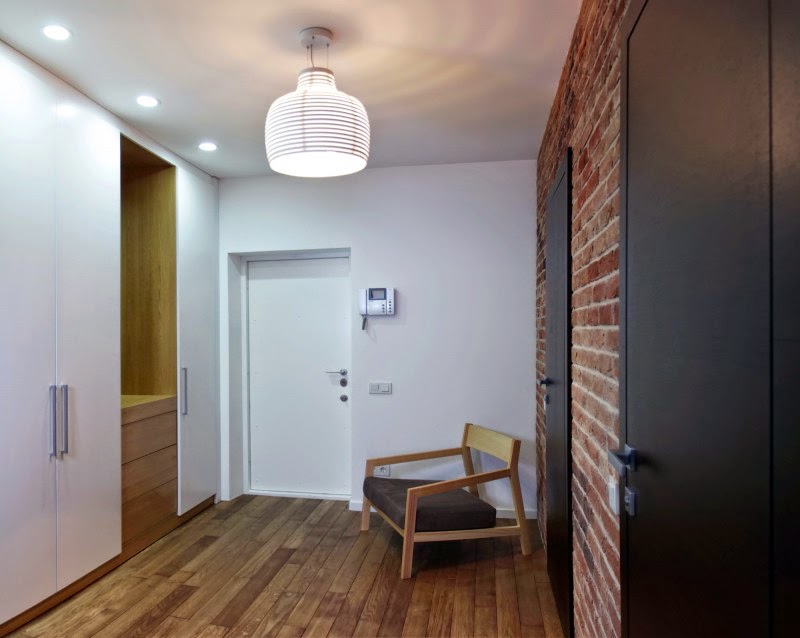 Jak urządzić nowoczesne mieszkanie, by miało industrialny charakter? Koniecznie użyć do wykończenia takich elementów jak cegła i inne naturalne materiały (drewno, metal) i zachować minimalizm w doborze dodatków. W tej aranżacji zostało to osiągnięte, jest tak mało dodatków, że główną ozdobą w toalecie stał się papier toaletowy 😉