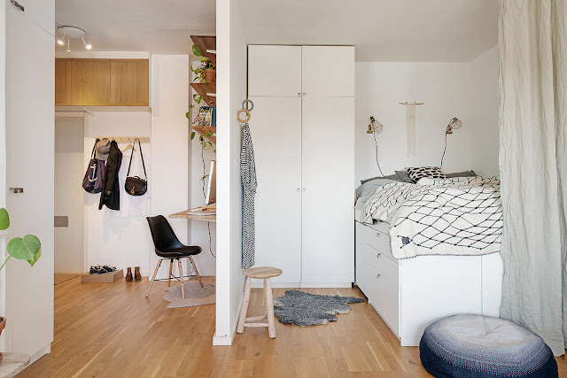Jak urządzić sypialnię w kawalerce – skandynawskie mieszkanie 42m2