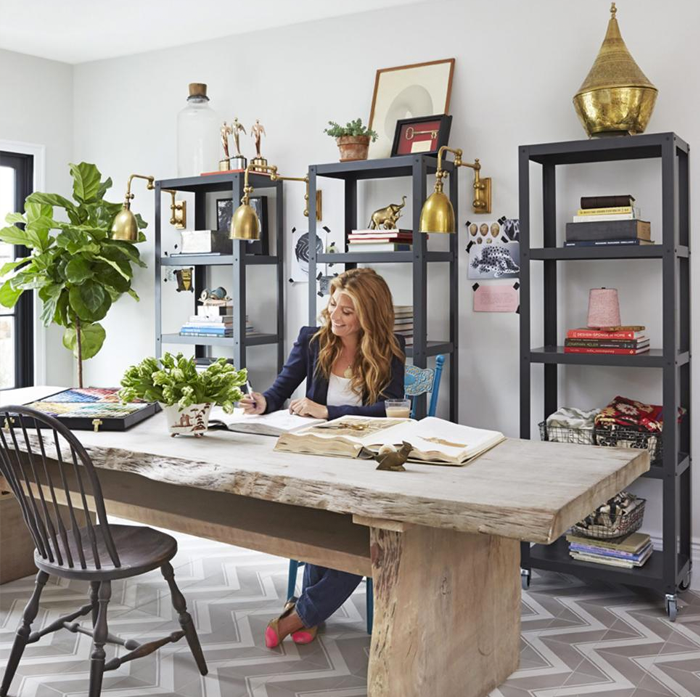 Bardzo ciekawe i do tego poza klasyką wyglądu – również funkcjonalne. No może poza tym jednym zdjęciem z Panią za biurkiem i trzema otwartymi regałami z tyłu. Ja zwariowałabym widząc na takich regałach wciąż kurz do ścierania, a w pracy nie mam na to czasu.