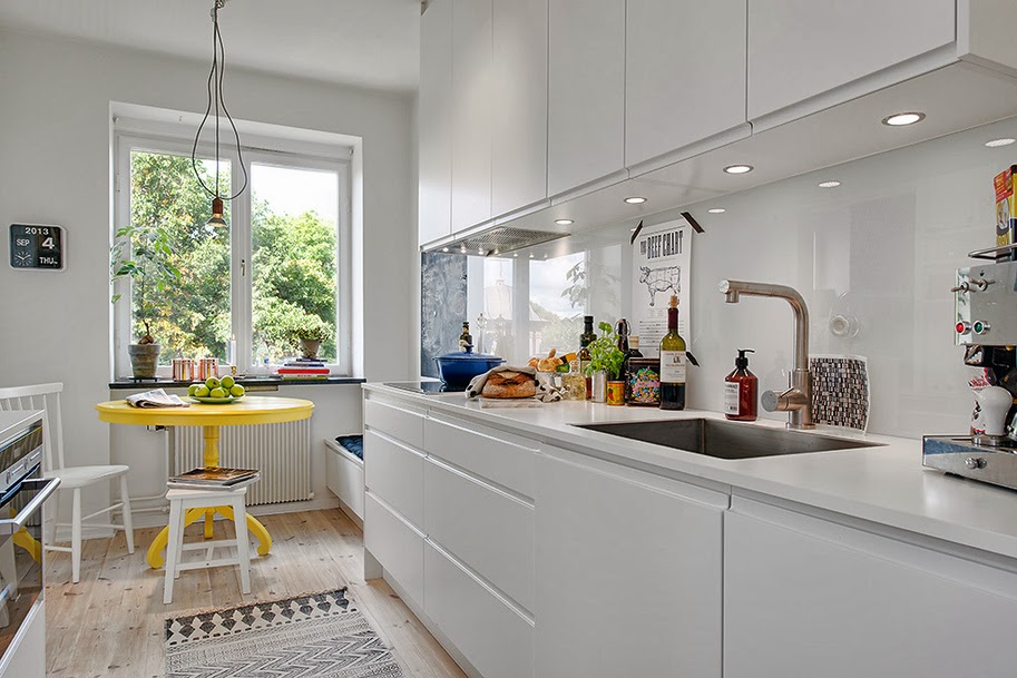 Jasne mieszkanie w stylu skandynawskim z oryginalnym „wewnętrznym oknem” – blog wnętrznarski