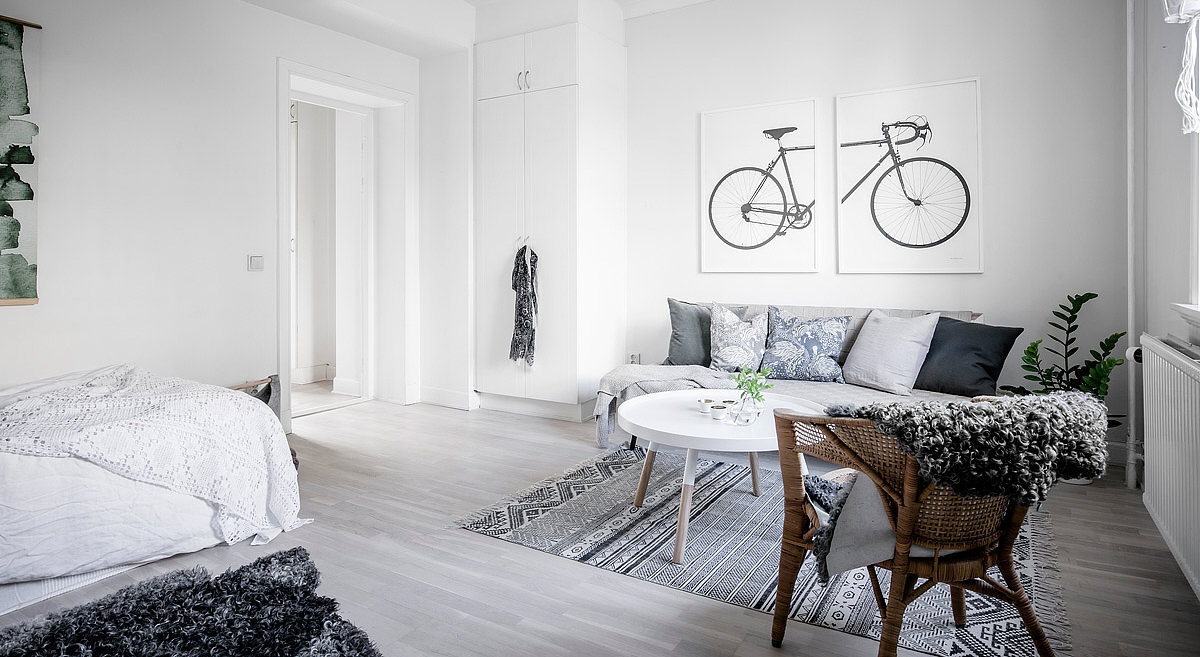 Skandynawski styl jest świetny. Mogłabym zamieszkać w takiej kawalerce 😉