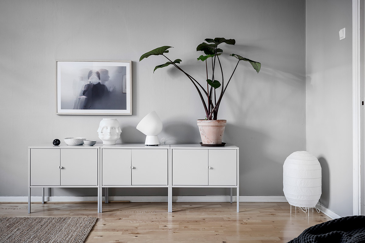 Ciekawy styl. Białe komody fajnie się prezentują na tle granatowej ściany. Pozdrawiam!