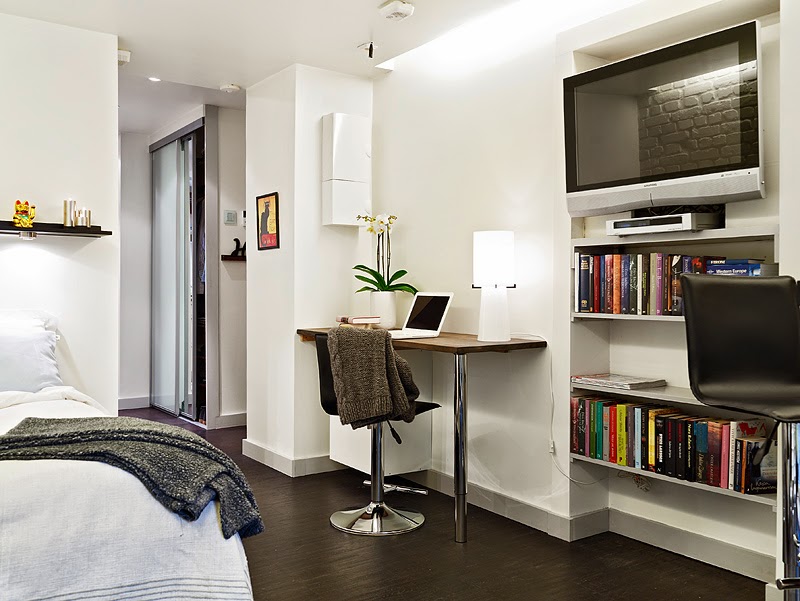 Kompaktowe mieszkanie przypomina mi trochę pokój hotelowy i pewnie ma taka funkcję np. dla osoby bywającej często w danym mieście z powodów "służbowych".