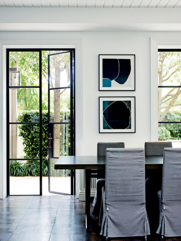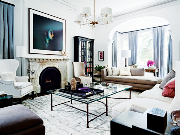 Przedstawiony wnętrze domu to stary (z XIX wieku) poddany renowacji budynek położony w Sydney. Ściany w dużej części białe, inne kolory występujące w tej aranżacji to czerń i beż, wykończenie stylowe, widoczne są elementy sztukaterii.