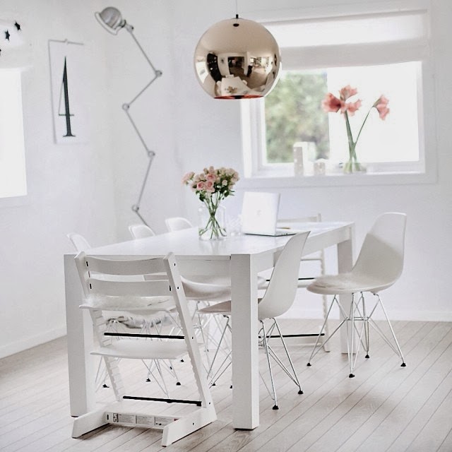 Wczoraj pisałam o lampie (widocznej na zdjęciu powyżej) Tom Dixon Copper Shade, jednak na tym zdjęciu jest jeszcze jeden przedmiot godny zainteresowania – krzesło dla dzieci Tripp Trapp® Stokke®.  Design rodem z Norwegii, krzesło jest produkowane od 1972 roku i „rośnie razem z dzieckiem (można je regulować do wielkości użytkownika). Cena ponad 700 zł. Dostępny w różnych kolorach. Znacie, podoba się Wam?