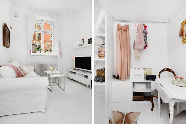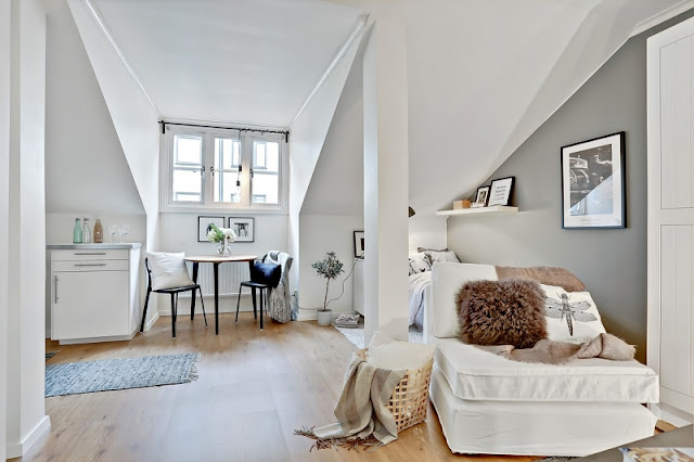 Dzisiaj przedstawiam skandynawskie (dokładnie szwedzkie) inspiracje. Styl ten idealnie komponuje się do małych wnętrz. Rozjaśnia wnętrze (dzięki zastosowaniu jasnych barw), a mebli i dekoracji jest niewiele aby nie zagracić przestrzeni. Z drugiej strony użycie naturalnych materiałów (najczęściej drewniana podłoga, dobrej jakości tkaniny) tworzy nam klimat wnętrza w dobrym guście! Zobaczcie aranżacje małych wnętrz – powierzchnie od 20m2 do 27m2.