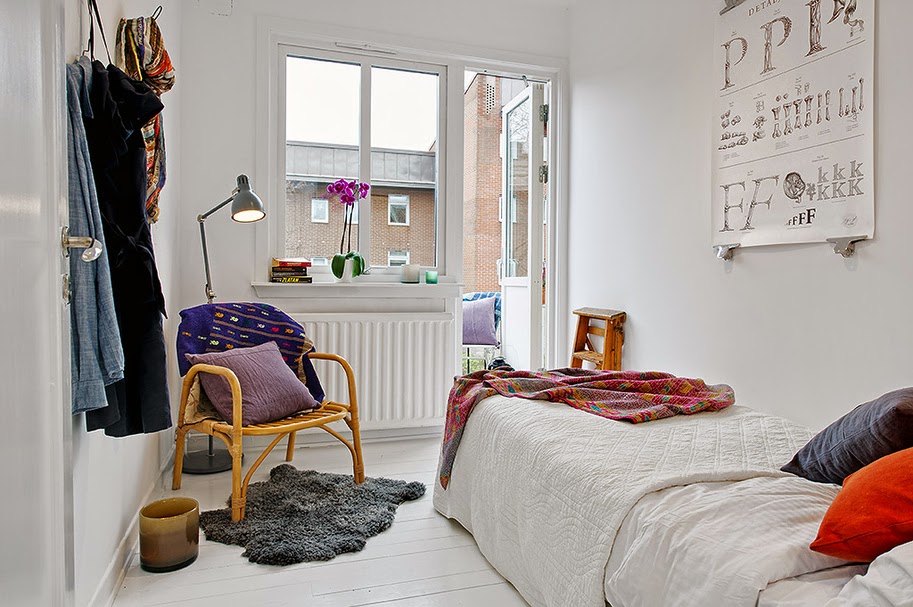 Mieszkanie dwupokojowe o powierzchni 39m2. Położone w zabytkowym budynku znajdującym się w Szwecji. Urządzone w typowym stylu skandynawskim: dużo bieli rozweselonej kolorowymi dodatkami. W mieszkaniu bardzo ładna jest podłoga z drewna pomalowana na biało. Całość przytulna i jak na jedynie 39m2 to urządzona w taki sposób by nie pomniejszać dodatkowy przestrzeni (jasne kolory, mało mebli itp.)