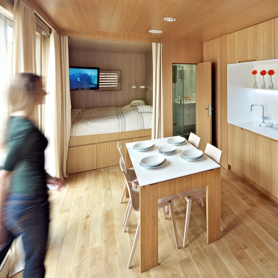 Część osób marzy o posiadaniu domu, własnej działki, którą często utożsamia z dużą swobodą. Ze względów ekonomicznych zdarza się, że metraż domu trzeba zmniejszyć, no ale nie zawsze tak skrajnie jak w tym przypadku 😉 Ten dom ma zaledwie 22m2, wykonany z prefabrykatów. Wewnątrz przestrzeń dzienna z kuchnią, sypialnia i łazienka. Idealny dla wymagających osób jako nowoczesny dom letniskowy!