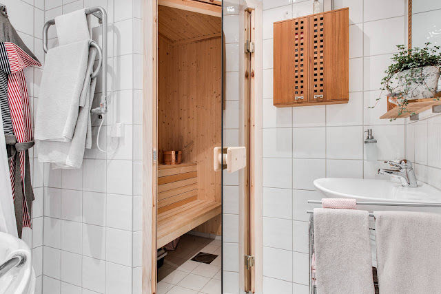 Antresola to świetne rozwiązanie, poza tym własna sauna – marzenie! Stylistyka całości jednak nie do końca do mnie przemawia, choć przyznaję i doceniam, że jest jasno i przytulanie.