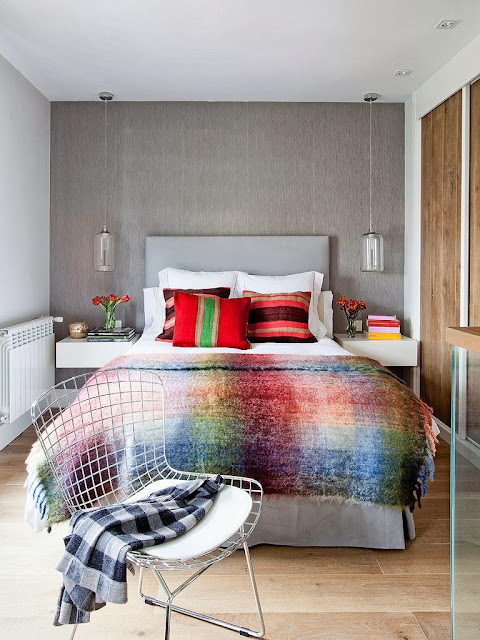 Prześliczny pled na łóżku- gdzie takie cudo można dostać? 🙂 My jak aranżowaliśmy mieszkanie to też zastanawiałam się nad tymi białymi krzesłami, ale ostatecznie wybraliśmy podobne tylko wyścielane pod tyłkiem i plecami bo jednak przy imprezach trochę niewygodnie siedzieć na takim twardym krześle przez 6 godzin 🙂