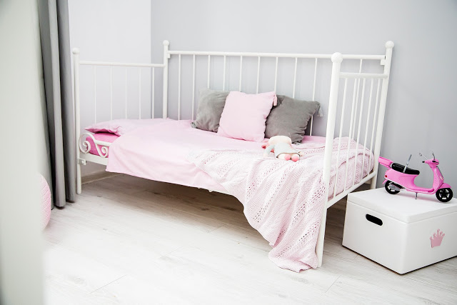 Zresztą według mnie metalowe łóżeczka w pokoju dziecka wyglądają obłędnie! Co widać na zdjęciach numer 3,4 i 5. W tym przypadku wybrano model z białą metalową ramą, który idealnie wkomponowuje się w stylistykę pokoju dziecka. W aranżacji dobrano także bieloną drewnianą podłogę i subtelne dodatki w kolorze delikatnego różu i szarości. Czyli połączono nowoczesność, minimalizm i dobry design, wszystko co jest tak