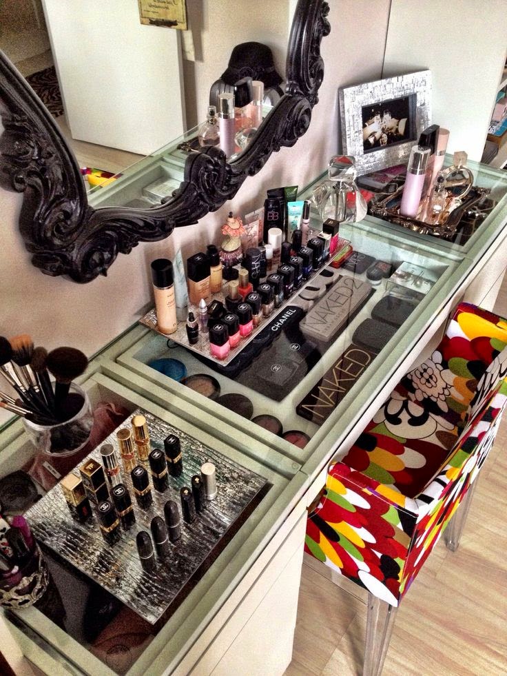 Miejsca do wykonywania makijażu to zdecydowanie królestwo kobiety. Nie każda z nas w domu miejsce na toaletkę. Jednak prawie każda kobieta lubi kosmetyki i zależy jej na ich organizacji w ten sposób, by były praktycznie poukładane. Pomocne staja się plastikowe przeźroczyste pudełka, w których widać całą zawartość, a także są łatwe w czyszczeniu. Zobaczcie inspiracje takich przestrzeni 🙂