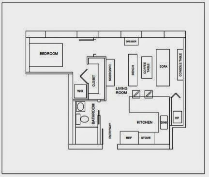 Mieszkanie ma 37m2 i jest przykładem jak na małej przestrzeni urządzić wygodne miejsce do życia. Znajduje się w Chicago, USA. Jest tutaj zaaranżowane miejsce do spędzania czasu w dzień, sypialnia i aneks kuchenny. Mimo małego metrażu jest przytulnie i nawet znaleziono miejsce na garderobę (drzwi za kanapą) i wieszak na rower !