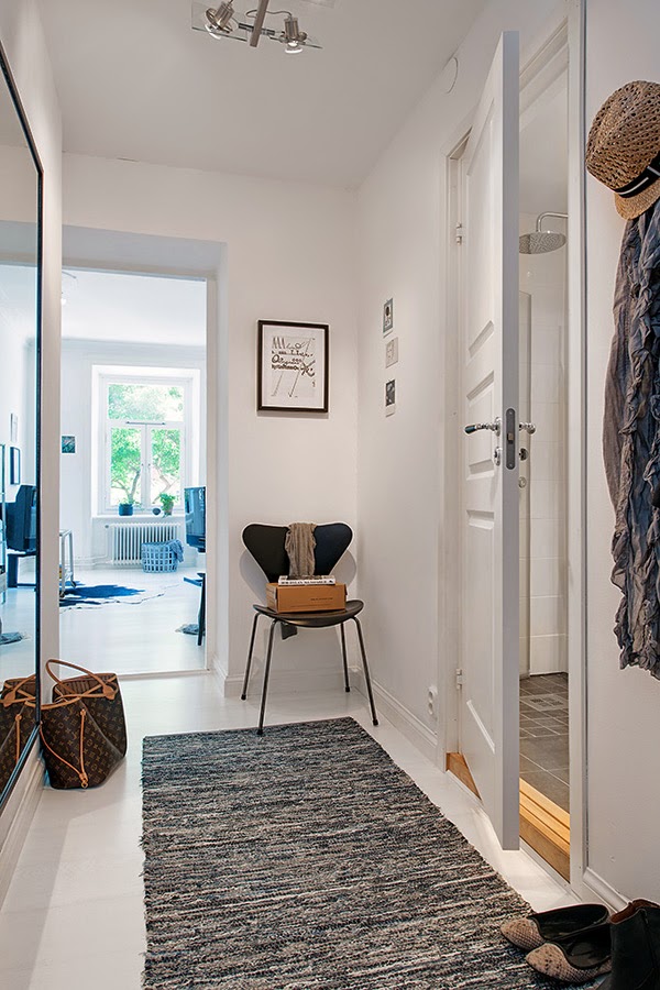 Przytulne mieszkanie 38m2, znajduje się w Szwecji.  Jest przykładem jak w ciekawy sposób zagospodarować małą przestrzeń oraz w  mieszkaniu, które składa się tylko z jednego pokoju wydzielić przestrzeń dzienną i sypialnię. Aranżacja jak to w skandynawskim stylu: jasne ściany i meble oraz bardzo przytulny balkon, pomimo nie za dużego rozmiaru pełen kwiatów i zieleni.