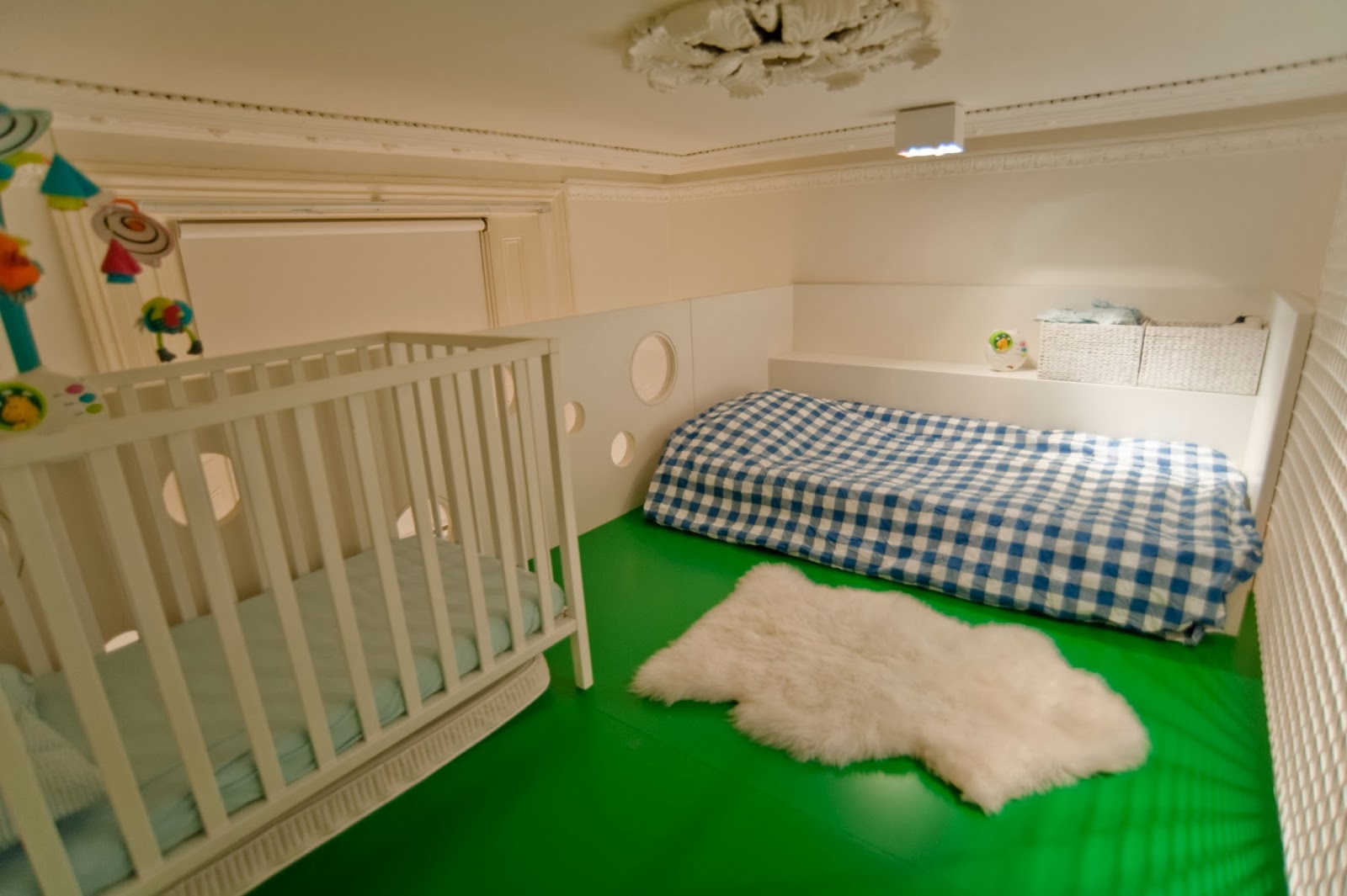 Super są te kolorowe schody dla dzieci i oddzielenie strefy do zabawy od strefy spania. Fajnie, że łazienka "na przełamanie" nie jest biała. Nie podoba mi się łóżko rodziców. Podziwiam rozmiar telewizora, dla niektórych osób spędzających przed nim całe dnie – nie do pomyślenia:)
