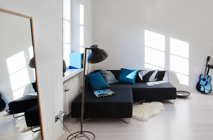 Mieszkanie 53m2 położone w Sztokholmie – minimalistyczny design skandynawski – aranżacja wnętrza – pomysł na urządzenie pokoju dziennego i sypialni – blog design