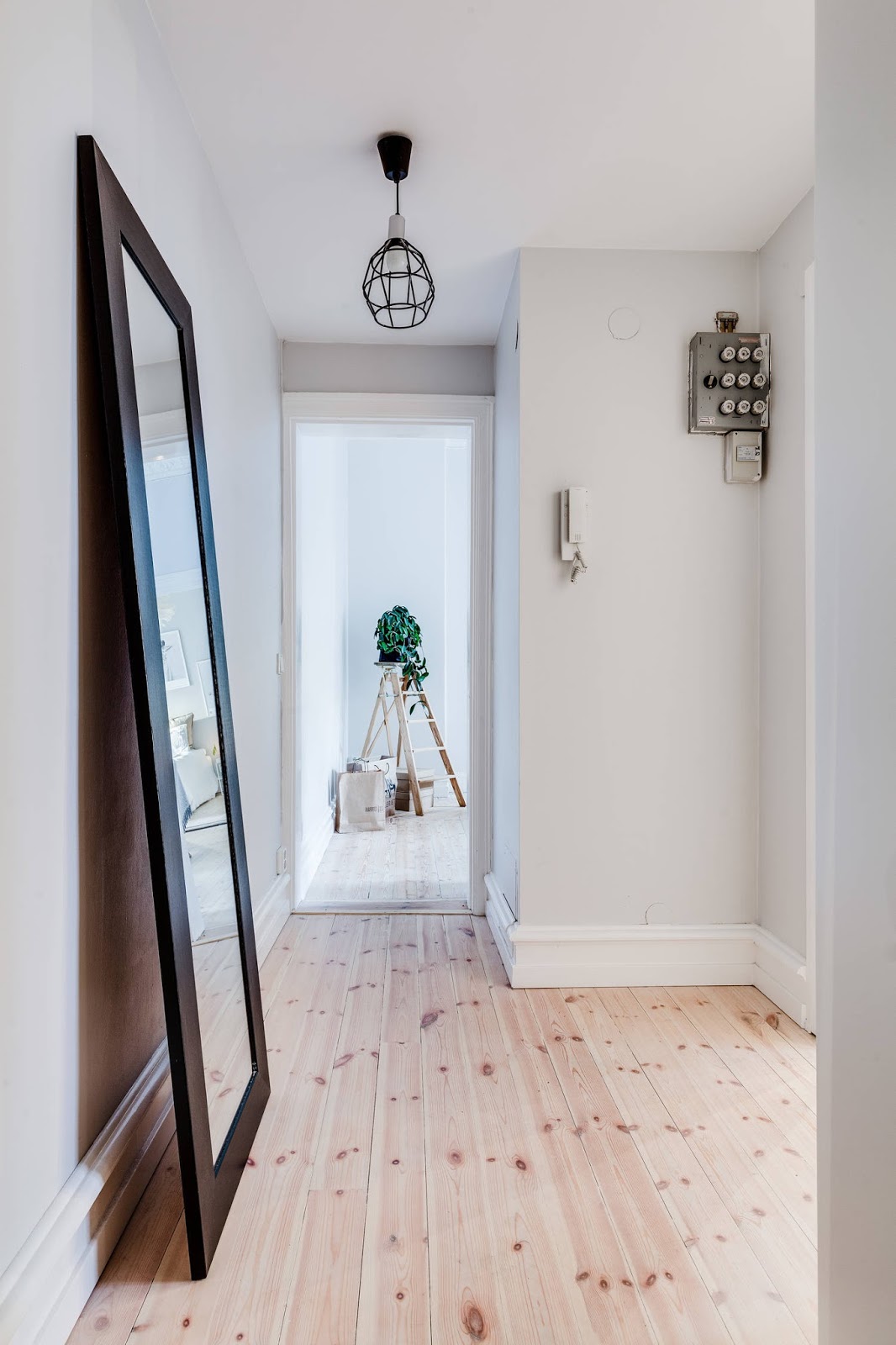 Biel, biel i wspaniałe dokończenie drewnianą podłogą:)