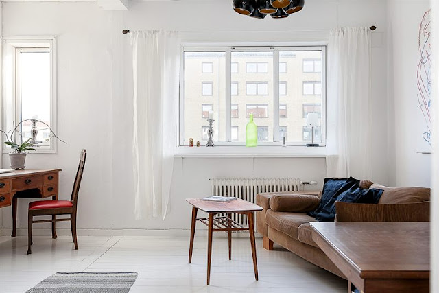 Mieszkanie dwupokojowe aranżacja z meblami w stylu retro vintage