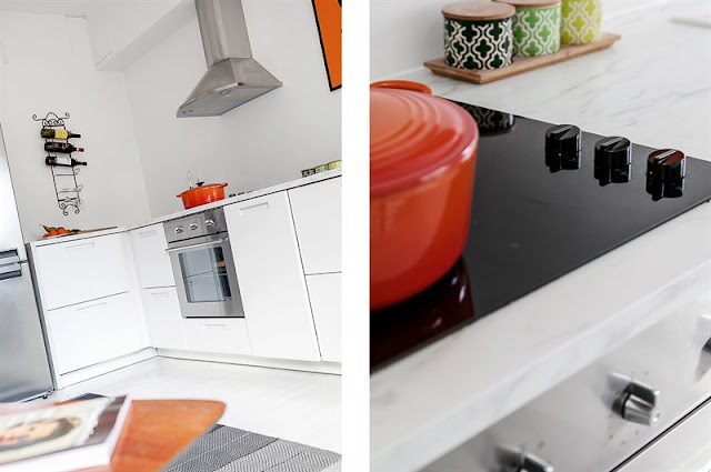 Trzeba przyznać, że jeżeli chodzi o aneks kuchenny bez szaf wiszących tak jakoś dziwnie się to prezentuję, ale bardzo oryginalnie, nietypowo. Chociaż osobiście ciężko byłoby mi się odnaleźć w takiej kuchni 😉