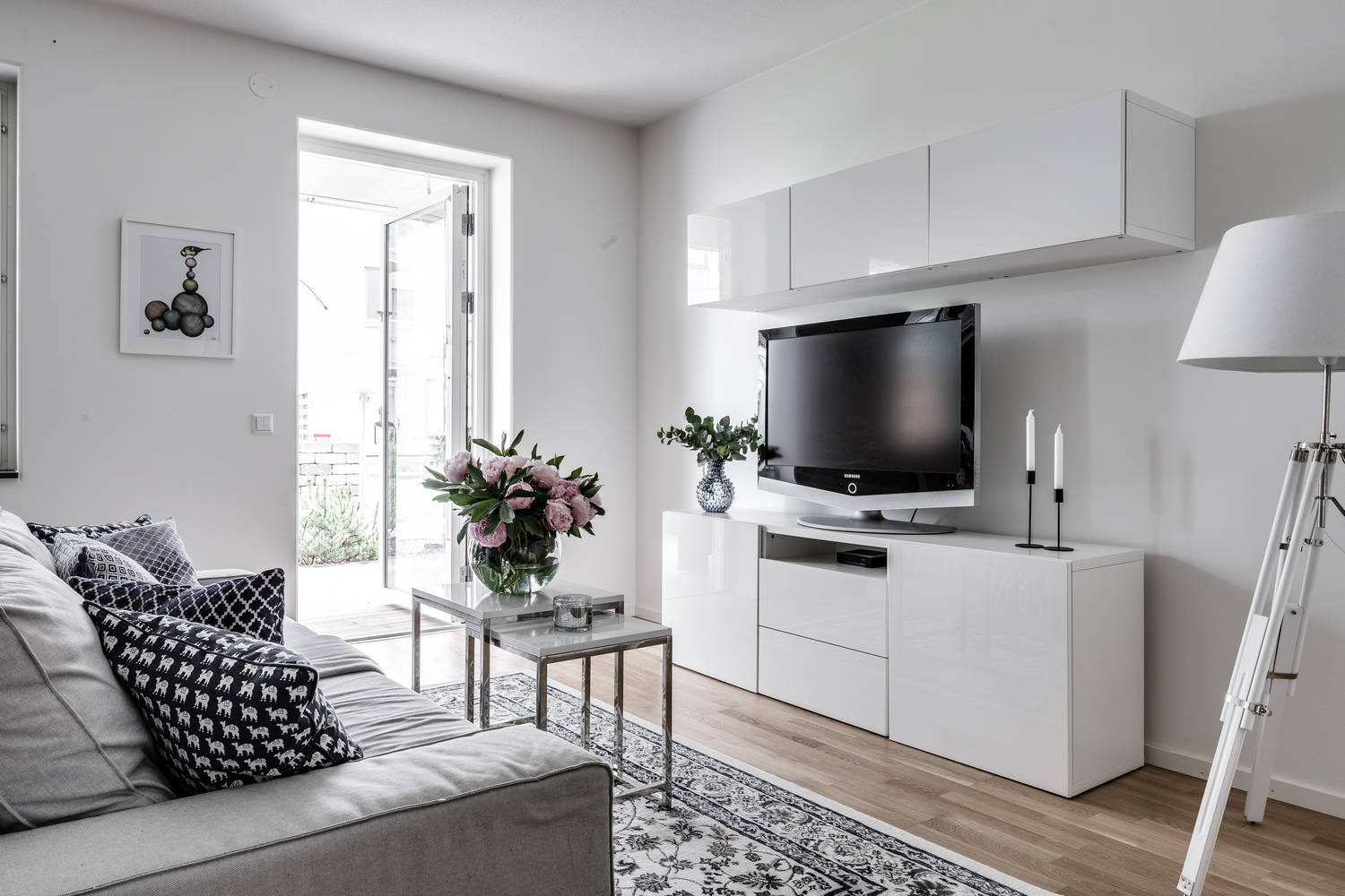 Łazienka to połączenie grafitowych i białych płytek. Sporą część pomieszczenia zajmuje pralka i suszarka , co w skandynawskich mieszkaniach jest standardowych rozwiązaniem (mieszkanie – aranżacja ze Szwecji). Ogródek mały, właściwie to otwarty taras (od chodnika dzielą go jedynie rośliny). Na stoliku widać alkohol, może do spotkań w ogrodzie idealne było by nagłośnienie – jeden ze sklepów oferujących profesjonalny sprzęt audio to centrumaudio.pl – produkty głównie przeznaczone do samochodów, ale nie tylko). Oczywiście żyjąc w bloku, konieczny jest szacunek do pozostałych mieszkańców 🙂