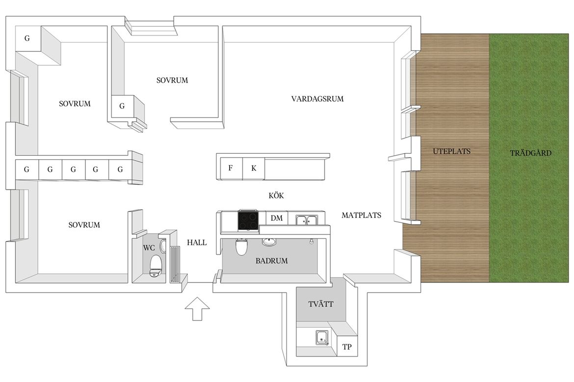 Szwedzkie mieszkanie położone na parterze z ogródkiem 90m2 czyli idealna przestrzeń dla rodziny. Wnętrze składa się z dużego pokoju dziennego połączonego z aneksem kuchennym, trzech sypialni, dwóch łazienek i pomieszczenia gospodarczego. Atutem mieszkania jest oczywiście ogródek, do którego można wyjść z aneksu kuchennego. Deweloperzy w Polsce coraz częściej budują bloki w ten sposób, aby mieszkania na parterze posiadały takie ogródki jako powierzchnie dodatkowe, fajne rozwiązanie szczególnie jeśli pośród mieszkańców są małe dzieci, albo zwierzęta.