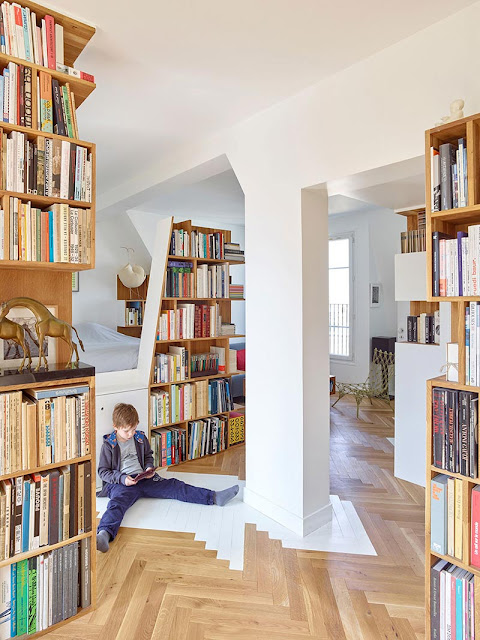 Ten pomysł z regałami jest genialny a ta podłoga pod nimi. SUPER POMYSŁ. Ja jestem zachwycona!