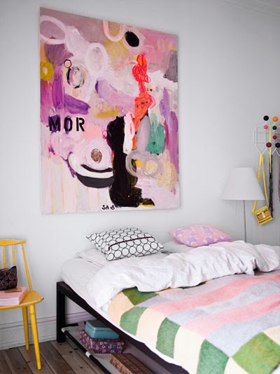 To wnętrze należy do projektantki biżuterii, jest jasne i przestronne, a oryginalność i klimat wprowadzają kolorowe obrazy !
