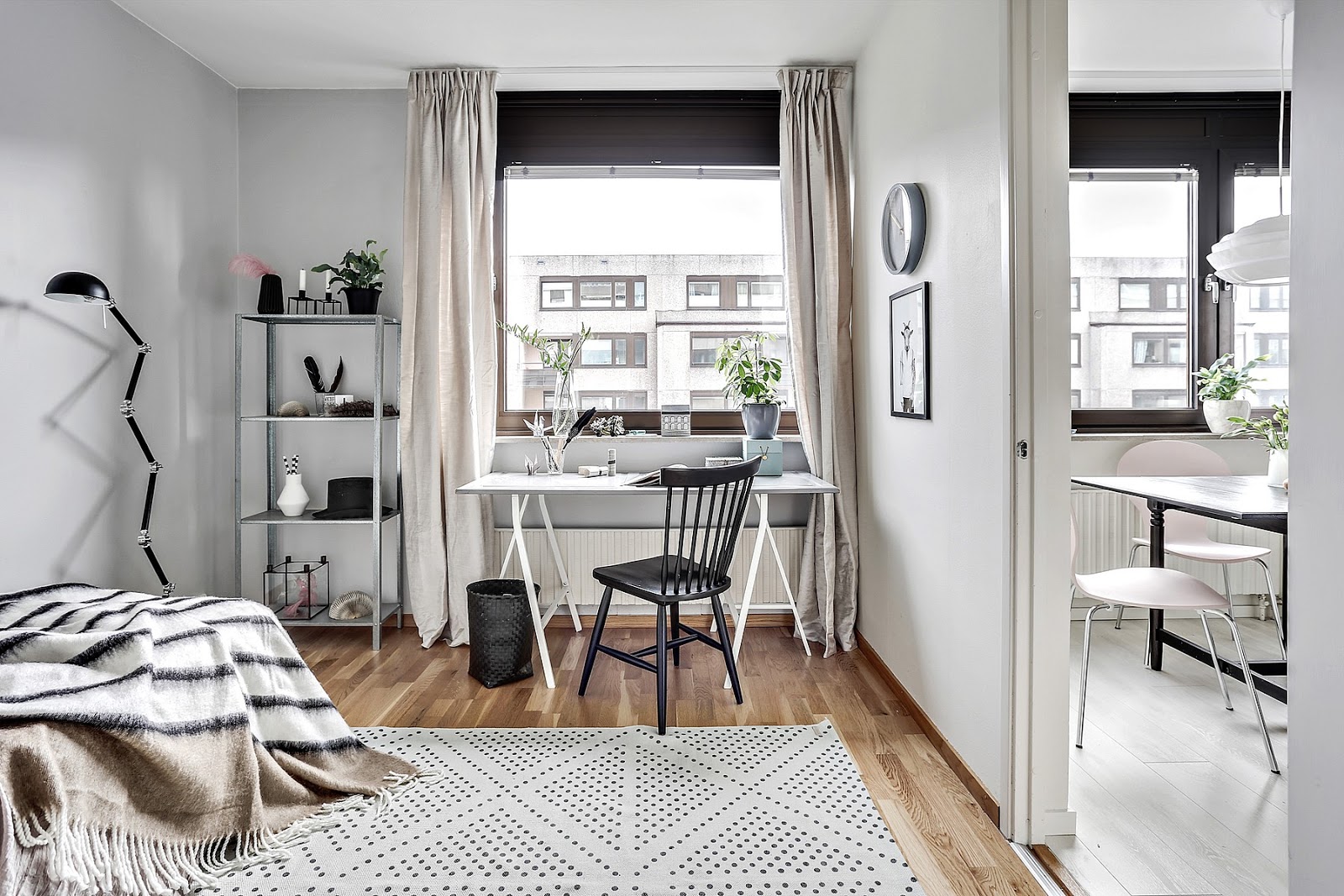 Warto także zwrócić uwagę na oświetlenie w tym mieszkaniu, lamp jest sporo wszystkie modele bardzo modne, zarówno lampy stojące, jak i wiszące. Podoba się Wam to wnętrze urządzone w skandynawskim stylu?