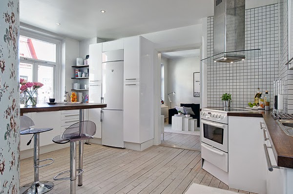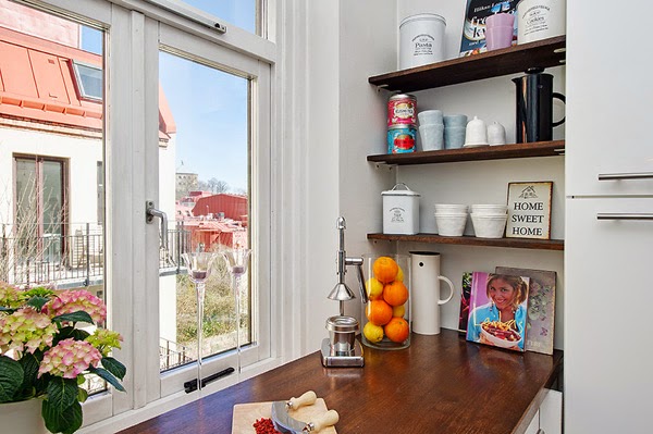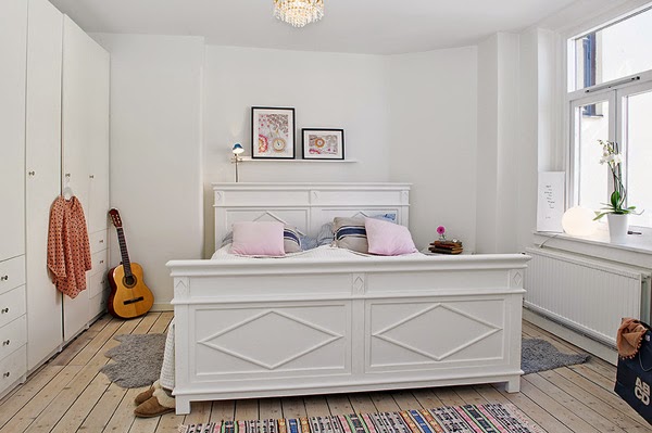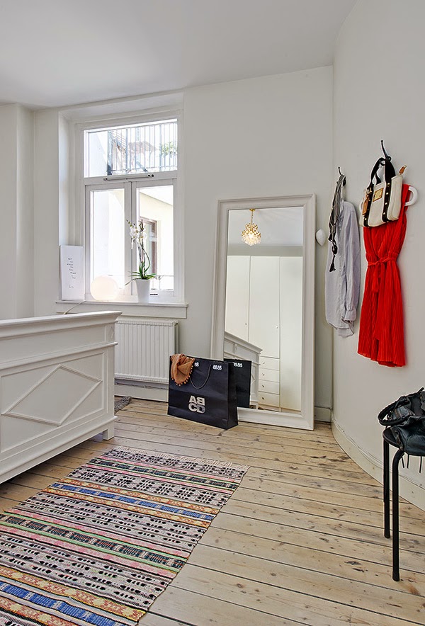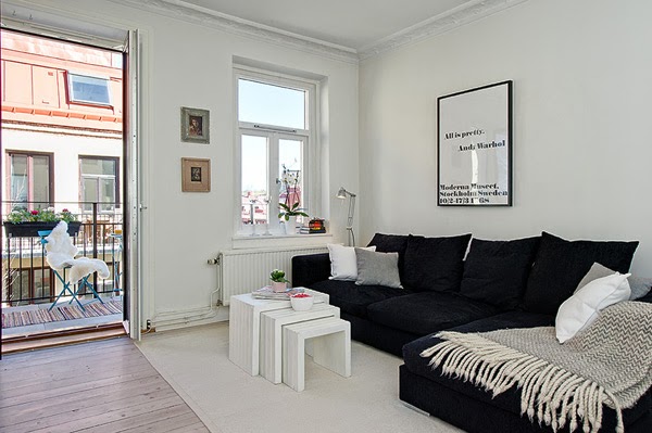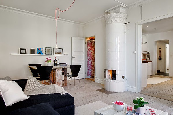 Mieszkanie w stylu skandynawskim położone w Szwecji. Wnętrze ma 64m2 i dużo uroku 🙂 Największym atutem według mnie jest balkon z ładnym widokiem. Ciekawie wyglądają także półokrągłe ściany w sypialni i kuchni (druga strona okrągłej klatki schodowej). Sam skandynawski styl jak zwykle niezawodny: jasno, klasycznie i bardzo przytulnie !