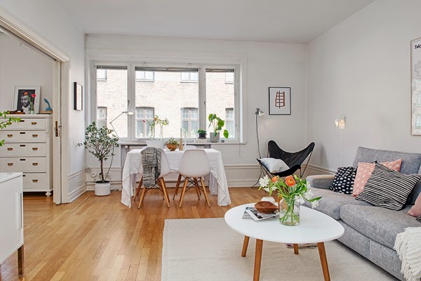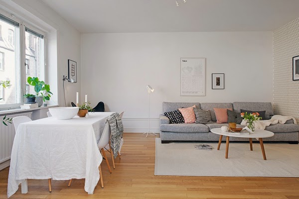 Mieszkanie położone w Sztokholmie urządzone (oczywiście) w stylu skandynawskim. Wnętrze ma 71m2 i charakter otwarty. Położone jest w budynku z 1935 roku. Według mnie Skandynawowie są mistrzami łączenia starego z nowym oraz dbałości o zachowanie oryginalnego stylu budynku. Spójrzcie na krzesło pełniące rolę stolika lub podłogę w kuchni, czy wiele z nas zostawia takie elementy remontując wnętrze, czy raczej chciało by posiadać coś „nowego”, co nie zawsze pasuje do starego budownictwa. Dodatkowo jak przystało na skandynawskie wnętrze jasne kolory i naturalne materiały.