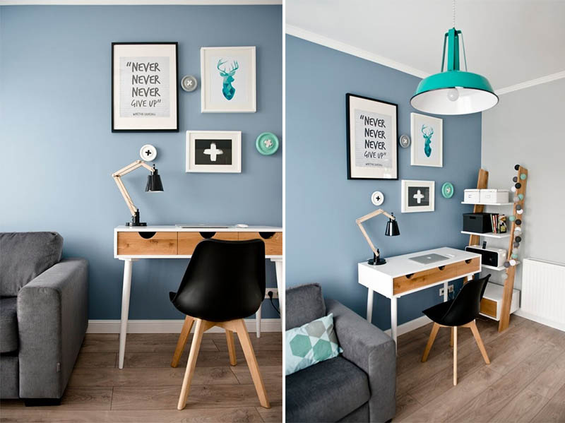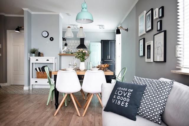 Przytulne mieszkanie w którym umieszczono wiele modnych dekoracji i mebli m.in. lodówka miętowa Smeg, cegła na ścianie, skandynawskie krzesła, obrazki w czarnych ramach. Stworzono praktyczną i ładną przestrzeń do życia. Ten projekt to dzieło artystyczne studia projektowego Shoko Design, jeśli jesteście na etapie urządzania własnego mieszkania lub domu, to zobaczcie ich wszystkie projekty, jest się czym zachwycić!