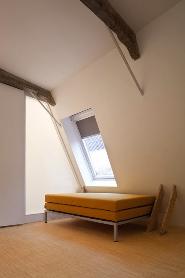 Wczoraj pisałam o Amsterdamie, dziś przyszedł czas na aranżację wnętrza z tego miasta. Apartament zaprojektowany przez duńskiego architekta, urządzony w stylu minimalistycznym. Jest dwu-poziomowy i ma 70m2 powierzchni. Na pierwszym poziomie znajduje się przestrzeń dzienna (salon, kuchnia), na drugim sypialnia i łazienka. Dodatkowo wnętrze wyróżniają ciekawe nowoczesne schody i … znikoma ilość przedmiotów osobistych właściciela.