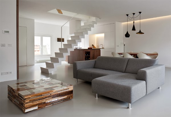 Nie przekonują mnie te schody. Wyglądają efektownie ale sprawiają wrażenie niepraktycznych. Dodatkowo mieszkanie sprawia wrażenie zimnego i sterylnego.